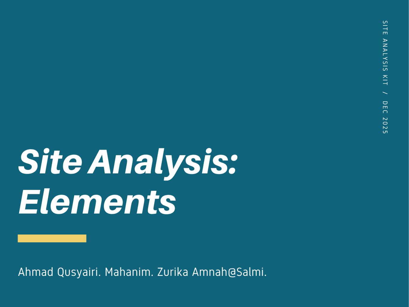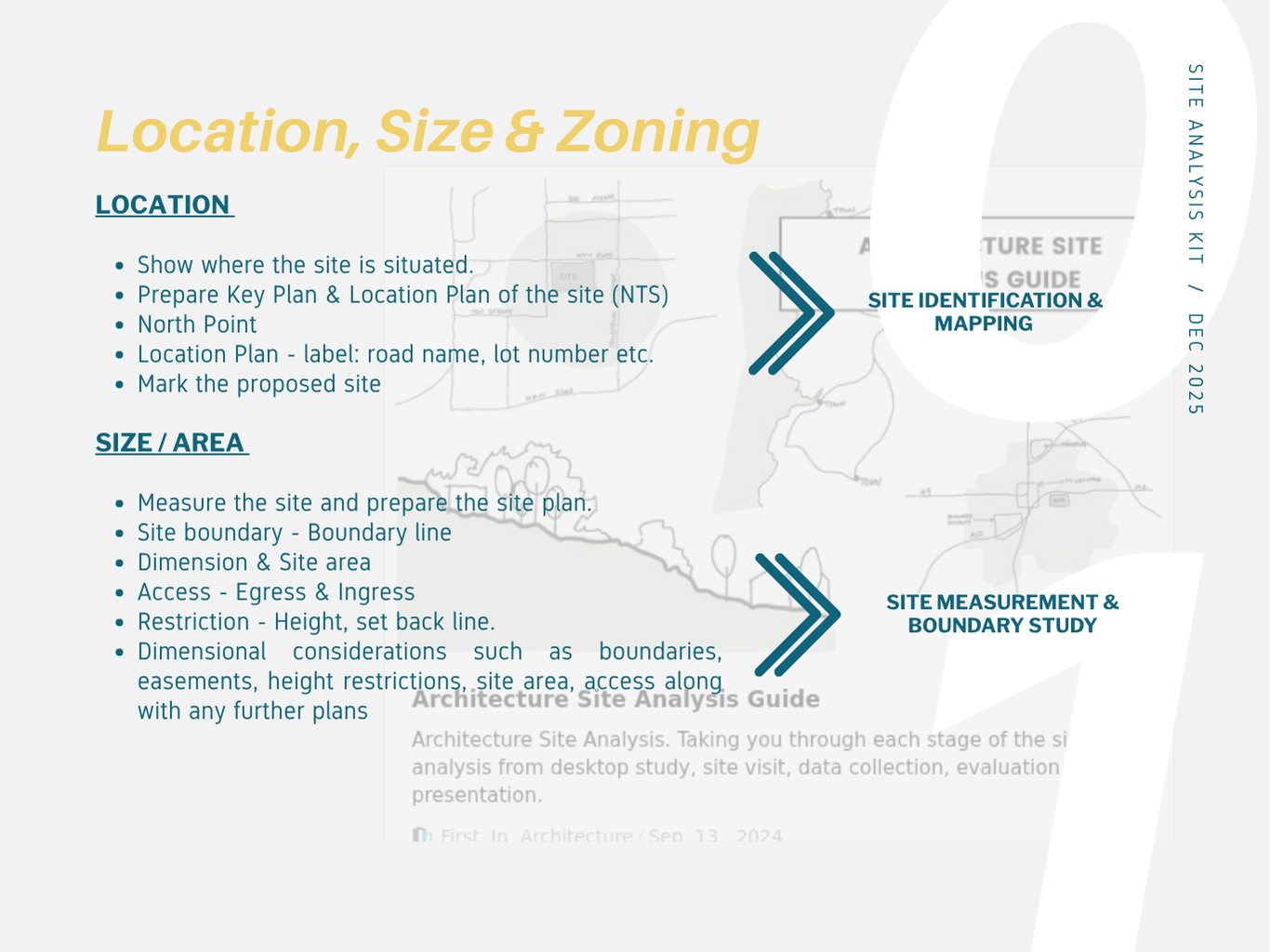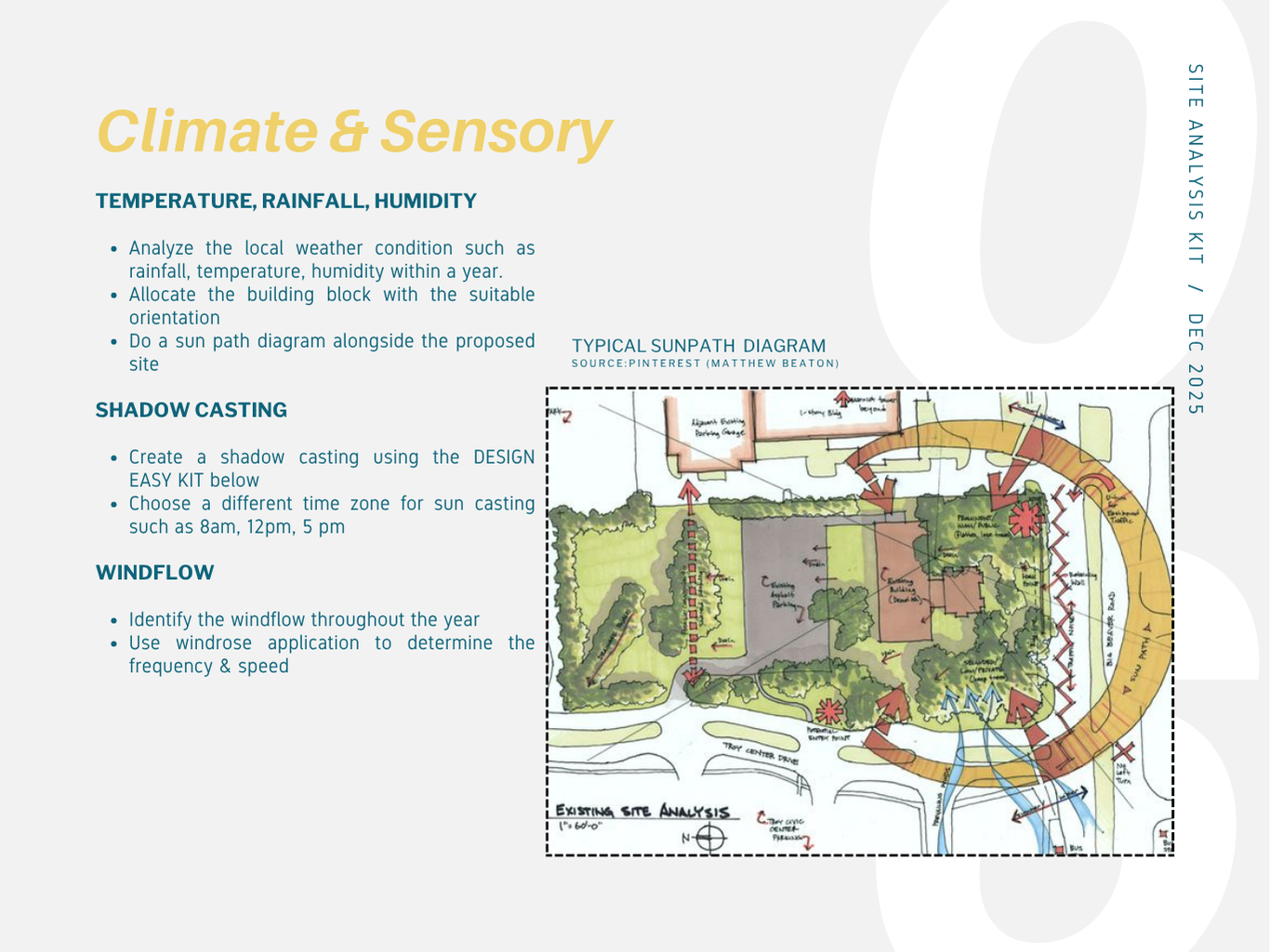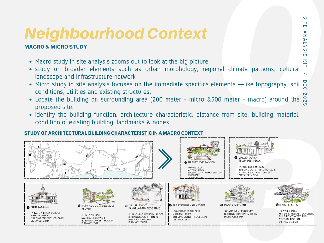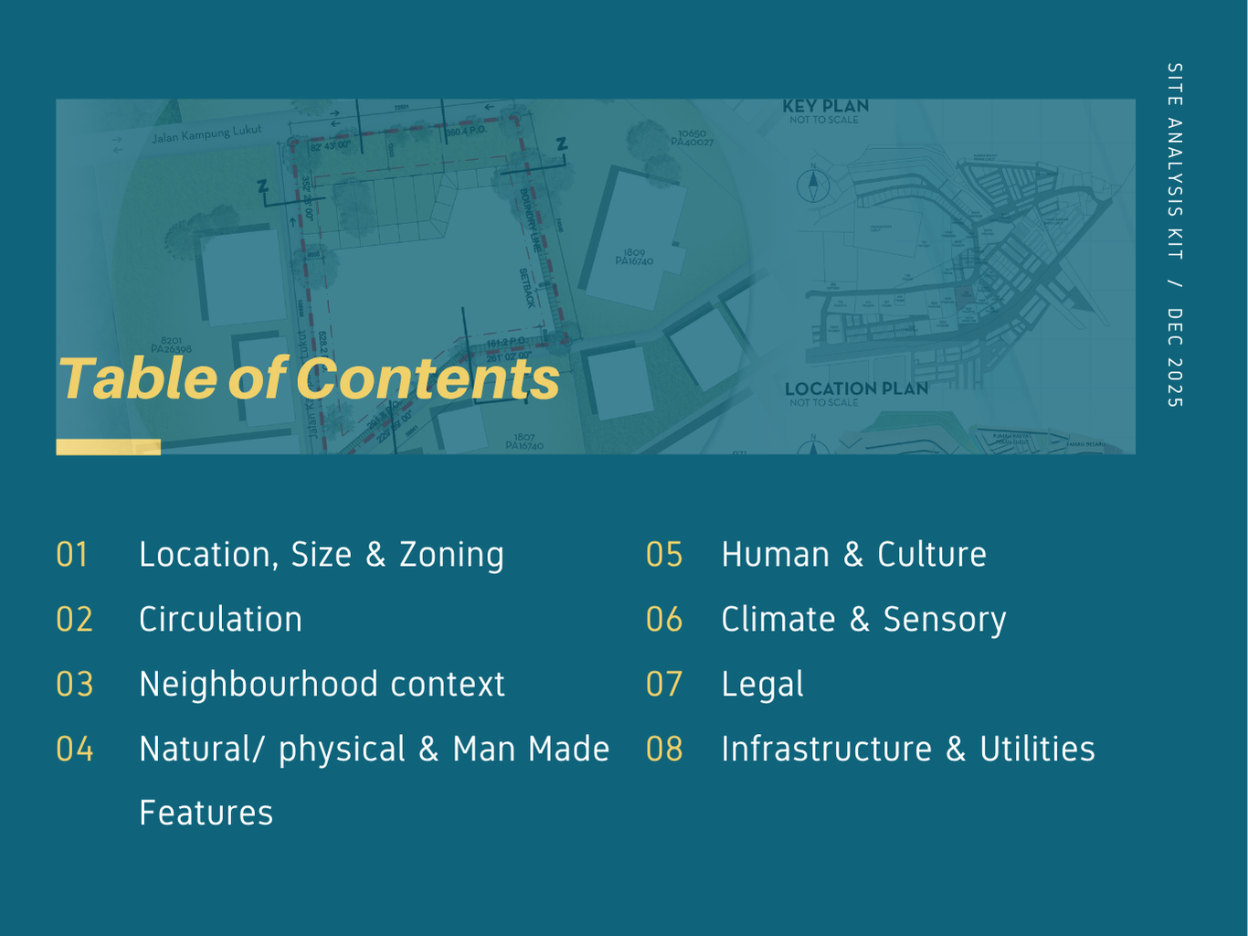 Many architecture students struggle with site analysis because they collect excessive or irrelevant data without a clear objective. This Site Analysis Kit is designed to guide learners through a focused, goal-oriented process for conducting effective site analysis.