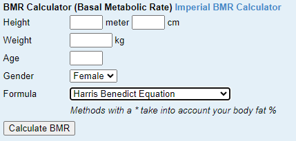 You can calculate your Basal Metabolic Rate (BMR) using this calculator.