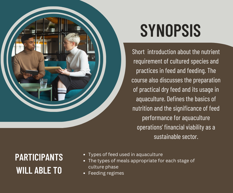 Feeding is one of the most critical aspects of aquaculture as it directly impacts the growth, health, and profitability of the farming operation. In natural settings, aquatic organisms depend on naturally available food sources like plankton, algae, and detritus. However, in controlled aquaculture systems, these sources are often insufficient, necessitating the use of formulated feeds. Proper feeding ensures not only high productivity but also sustainability by reducing feed waste and environmental impact. This chapter sets the foundation by discussing the importance of feed in aquaculture and the evolution of feed practices over time.